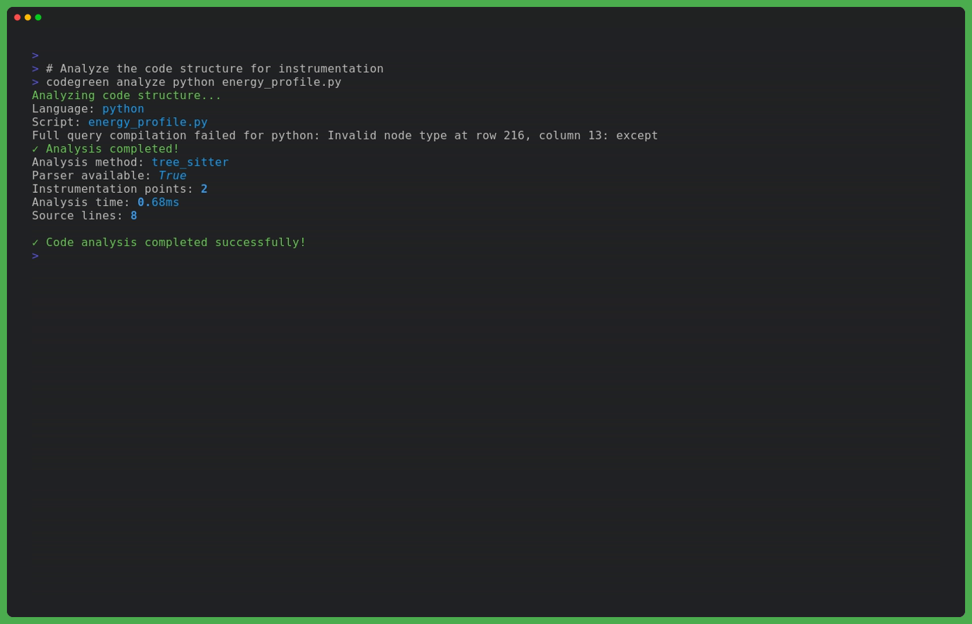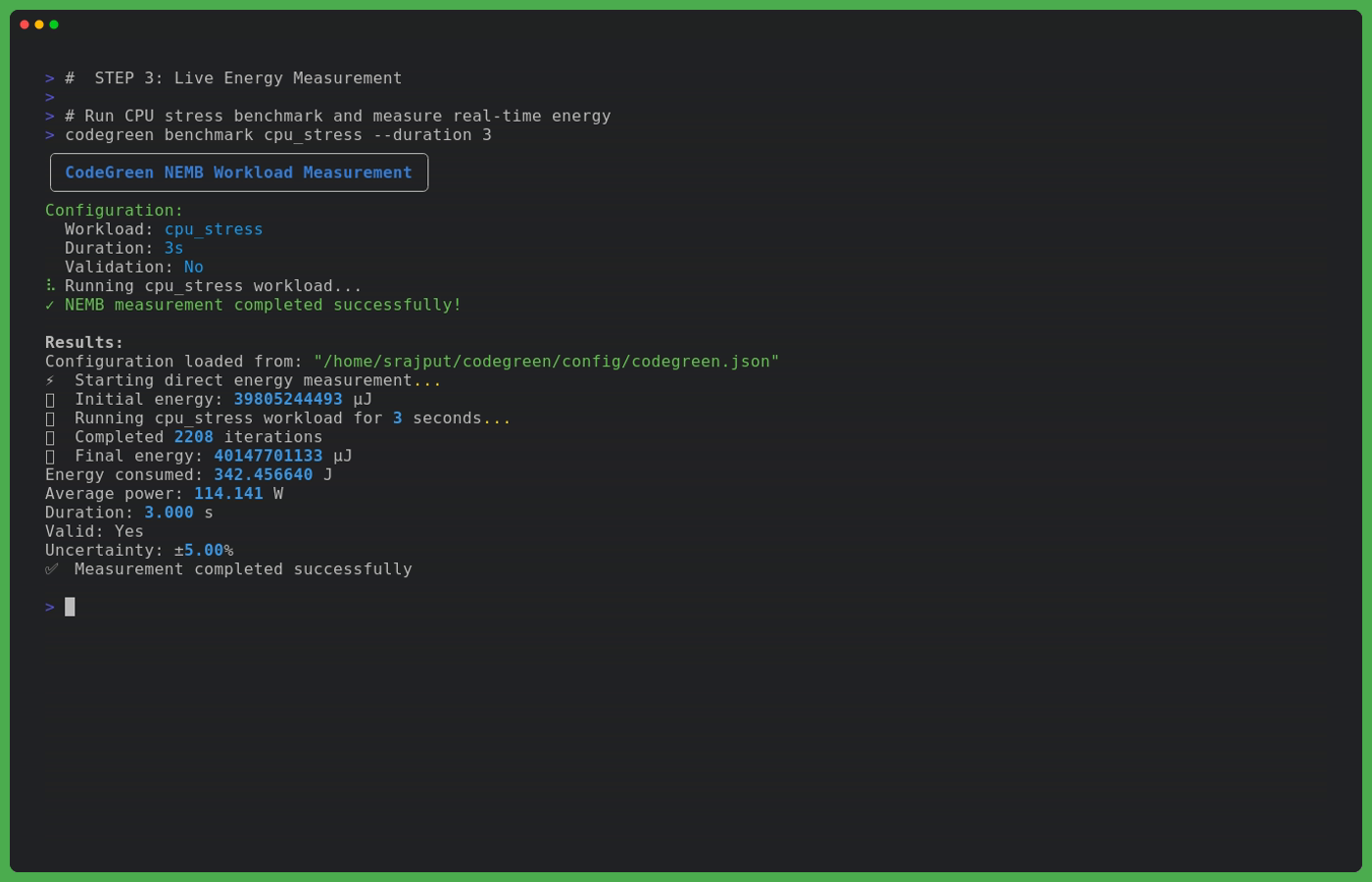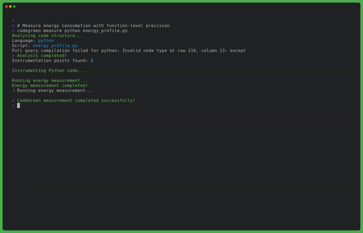 Watch CodeGreen in action: A complete walkthrough from installation to detailed energy analysis.